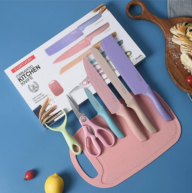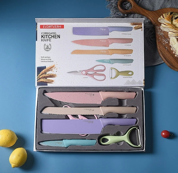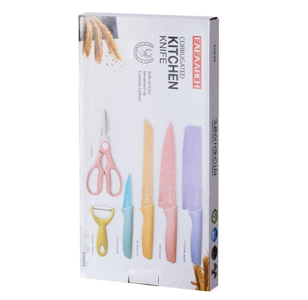 Cut with precision using this complete set of 6 granite kitchen knives. Sharp, durable, and crafted for everyday use.