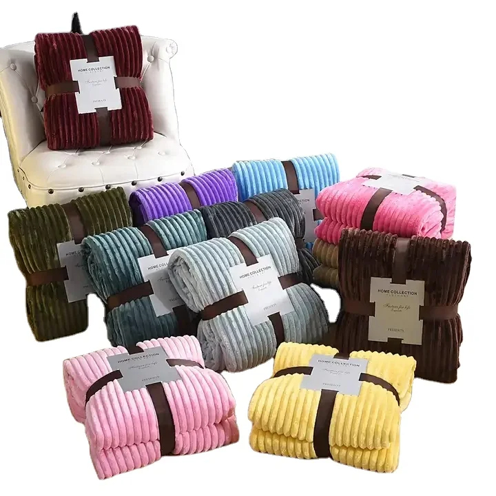 Stripe Thick Sheep Fleece Blanket Winter Good Quality